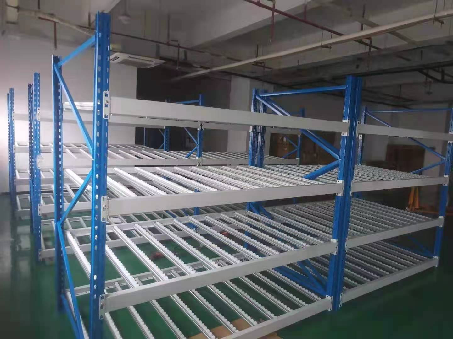 空間利用率極高,適于儲(chǔ)存少品種大排量同類(lèi)型貨物,貨物可從同一側(cè)存入取出,也可從一側(cè)存入另一側(cè)取出。全插接組裝式結(jié)構(gòu),柱片為裝配式結(jié)構(gòu),靠墻區(qū)域的貨架總深度一般最好控制在5個(gè)托盤(pán)深度以?xún)?nèi),中間區(qū)域可兩邊進(jìn)出的貨架總深度一般最好控制在10個(gè)托盤(pán)深度以?xún)?nèi),以提高叉車(chē)存取的效率和可靠性。貫通式通道寬度看托盤(pán)和貨物,一般差不多在1.4米多點(diǎn)差不多就行,注意叉車(chē)選配時(shí)候車(chē)身尺寸和貨架向?qū)У拈g距,作業(yè)時(shí)候小心操作即可。