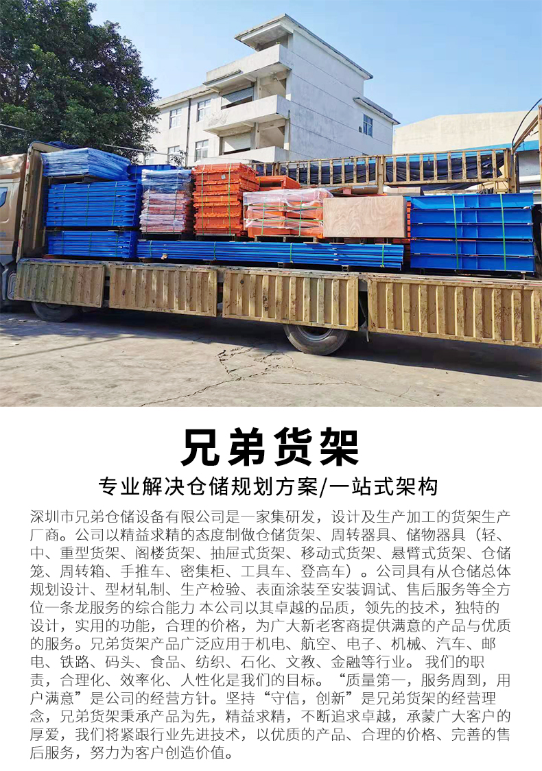 深圳兄弟倉儲(chǔ)貨架專業(yè)生產(chǎn)重型貨架,懸臂架,閣樓式貨架,輕中型貨架,模具貨架.根據(jù)客戶的需求點(diǎn)出發(fā)幫客戶解決貨架選款,貨架尺寸,貨架 承重,貨架定制等問題,免費(fèi)上門測(cè)量CAD方案,是一個(gè)貼心,省心,價(jià)格實(shí)惠的貨架廠家,在線客服或電話:18126304965 微信同步 我們隨時(shí)為您服務(wù)! 五年質(zhì)保服務(wù),保修期內(nèi)因產(chǎn)品本身質(zhì)量問題,承諾免費(fèi)維修或更換