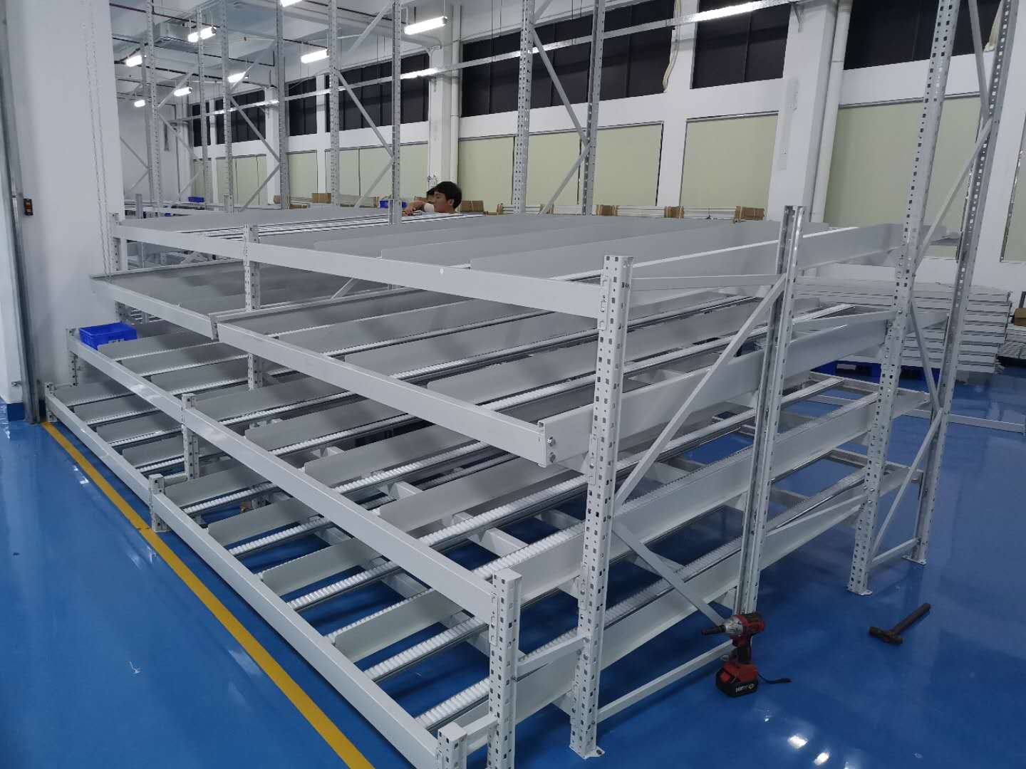 2、貨架層數(shù):4層流利條(鈑金)+4層鋼層板