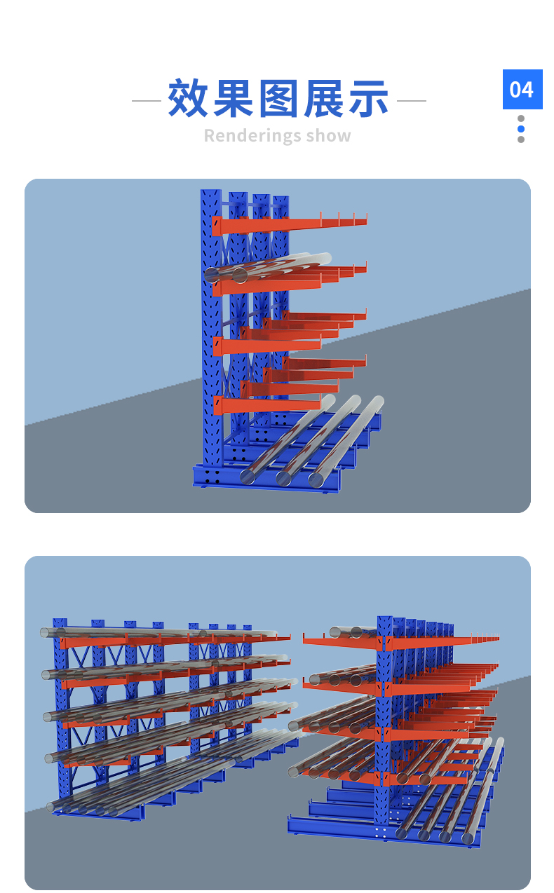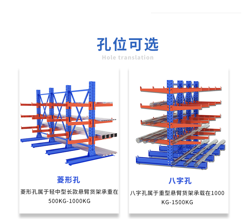 懸臂式貨架是貨架中重要的一種。適用于存放長物料、環(huán)型物料、板材、管材及不規(guī)則貨物??梢允菃蚊婊螂p面,懸臂式貨架具有結(jié)構(gòu)穩(wěn)定,載重能力好、空間利用率高等特點。懸臂式貨架立柱多采用H型鋼或冷軋型鋼,采用方管、冷軋型鋼或H型鋼,懸臂與立柱間采用插接式或螺栓連接式,底座與立柱間采用螺栓連接式,底座采用冷軋型鋼或H型鋼。